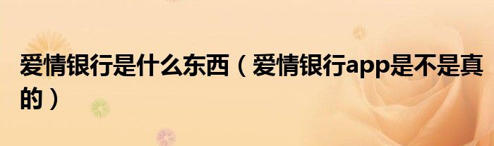 大家好,小晋来为大家解答以下问题,关于爱情银行是什么东西,爱情银行app是不是真的很多人还不知道,今天让我们一起来看看吧!