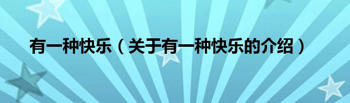 大家好,今天小乐来为大家解答以上的问题。有一种快乐,关于有一种快乐的介绍很多人还不知道,现在让我们一起来看看吧!