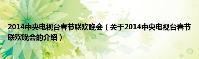 2014中央电视台春节联欢晚会(关于2014中央电视台春节联欢晚会的介绍)