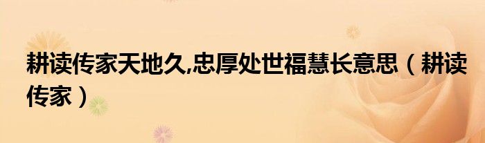 耕读传家天地久,忠厚处世福慧长意思(耕读传家)