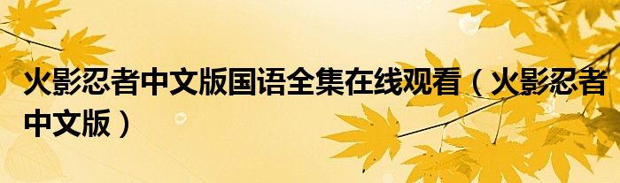 关于火影忍者中文版国语全集在线观看,火影忍者中文版这个很多人还不知道,今天菲菲来为大家解答以上的问题,现在让我们一起来看看吧!