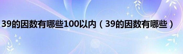 大家好,小晋来为大家解答以下问题,关于39的因数有哪些100以内,39的因数有哪些很多人还不知道,今天让我们一起来看看吧!