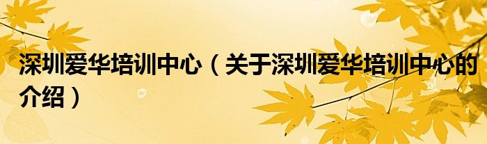 深圳爱华培训中心(关于深圳爱华培训中心的介绍)