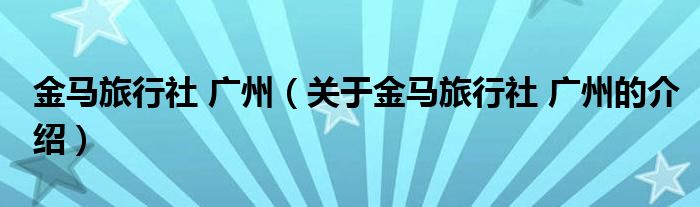 金马旅行社 广州(关于金马旅行社 广州的介绍)