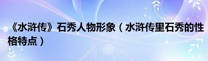 关于《水浒传》石秀人物形象,水浒传里石秀的性格特点这个很多人还不知道,今天菲菲来为大家解答以上的问题,现在让我们一起来看看吧!