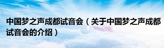 大家好,今天小乐来为大家解答以上的问题。中国梦之声成都试音会,关于中国梦之声成都试音会的介绍很多人还不知道,现在让我们一起来看看吧!