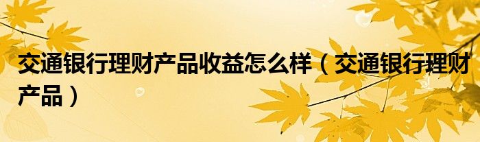 关于交通银行理财产品收益怎么样,交通银行理财产品这个很多人还不知道,今天菲菲来为大家解答以上的问题,现在让我们一起来看看吧!