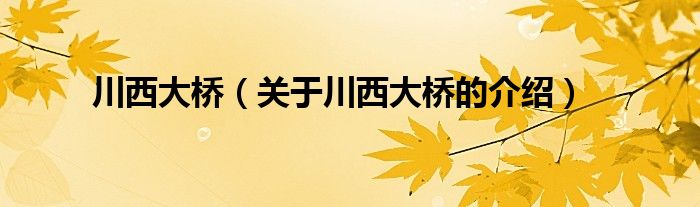 大家好,今天小乐来为大家解答以上的问题。川西大桥,关于川西大桥的介绍很多人还不知道,现在让我们一起来看看吧!