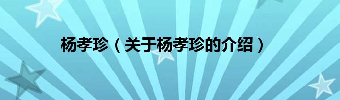 大家好,今天小乐来为大家解答以上的问题。杨孝珍,关于杨孝珍的介绍很多人还不知道,现在让我们一起来看看吧!