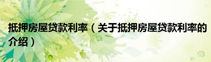 大家好,今天小乐来为大家解答以上的问题。抵押房屋贷款利率,关于抵押房屋贷款利率的介绍很多人还不知道,现在让我们一起来看看吧!