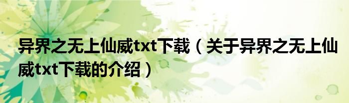 异界之无上仙威txt下载(关于异界之无上仙威txt下载的介绍)
