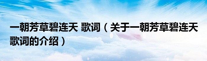 大家好,今天小乐来为大家解答以上的问题。一朝芳草碧连天 歌词,关于一朝芳草碧连天 歌词的介绍很多人还不知道,现在让我们一起来看看吧!