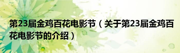 大家好,今天小乐来为大家解答以上的问题。第23届金鸡百花电影节,关于第23届金鸡百花电影节的介绍很多人还不知道,现在让我们一起来看看吧!