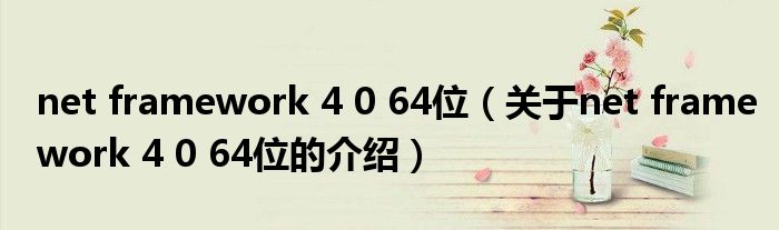 net framework 4 0 64位(关于net framework 4 0 64位的介绍)