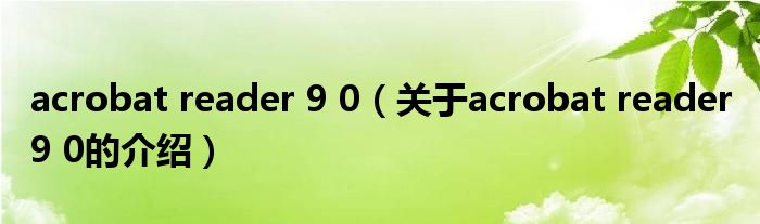 大家好,今天小乐来为大家解答以上的问题。acrobat reader 9 0,关于acrobat reader 9 0的介绍很多人还不知道,现在让我们一起来看看吧!