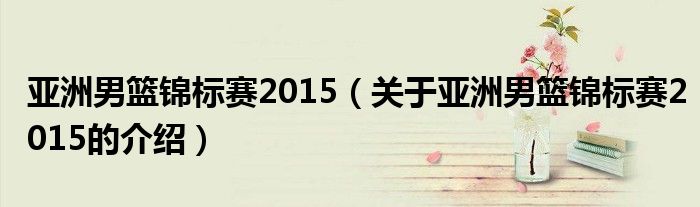 大家好,今天小乐来为大家解答以上的问题。亚洲男篮锦标赛2015,关于亚洲男篮锦标赛2015的介绍很多人还不知道,现在让我们一起来看看吧!