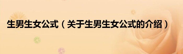 大家好,小都来为大家解答以上的问题。生男生女公式,关于生男生女公式的介绍很多人还不知道,现在让我们一起来看看吧!