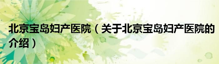 北京宝岛妇产医院(关于北京宝岛妇产医院的介绍)