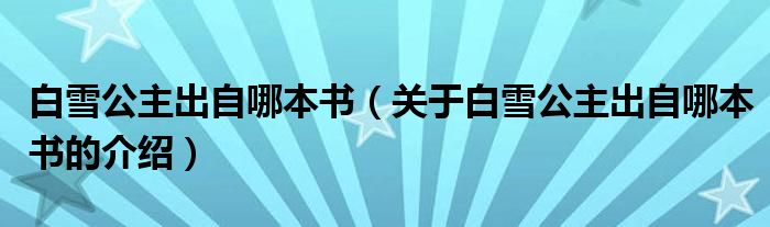 大家好,小都来为大家解答以上的问题。白雪公主出自哪本书,关于白雪公主出自哪本书的介绍很多人还不知道,现在让我们一起来看看吧!