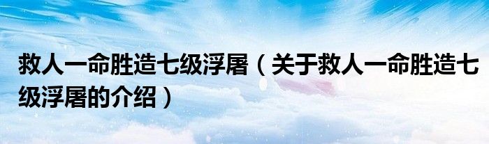 救人一命胜造七级浮屠(关于救人一命胜造七级浮屠的介绍)