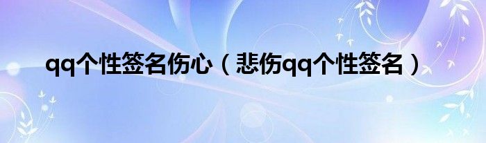 大家好,来宝来为大家解答以下问题,qq个性签名伤心,悲伤qq个性签名很多人还不知道,今天让我们一起来看看吧!