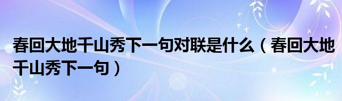 春回大地千山秀下一句对联是什么(春回大地千山秀下一句)