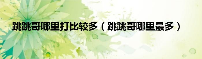 大家好,雨雨来为大家解答以上问题,跳跳哥哪里打比较多,跳跳哥哪里最多很多人还不知道,现在让我们一起来看看吧!
