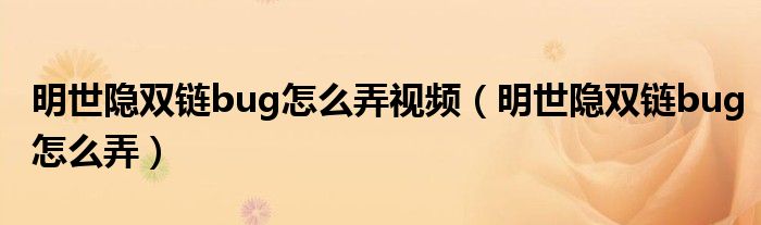 大家好,雨雨来为大家解答以上问题,明世隐双链bug怎么弄视频,明世隐双链bug怎么弄很多人还不知道,现在让我们一起来看看吧!