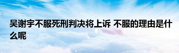 大家好.我是互联百科的羽儿,现在为大家解决以上吴谢宇不服死刑判决将上诉 不服的理由是什么呢的问题.