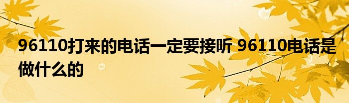 大家好.我是互联百科的羽儿,现在为大家解决以上96110打来的电话一定要接听 96110电话是做什么的的问题.