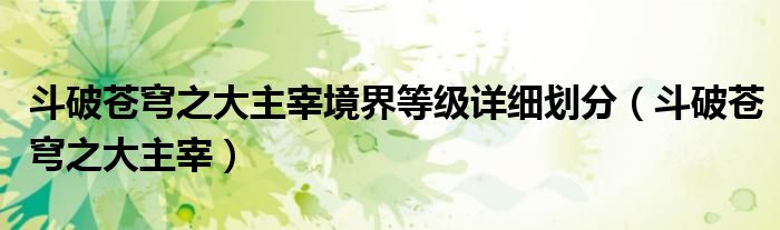 大家好,小晋来为大家解答以下问题,关于斗破苍穹之大主宰境界等级详细划分,斗破苍穹之大主宰很多人还不知道,今天让我们一起来看看吧!