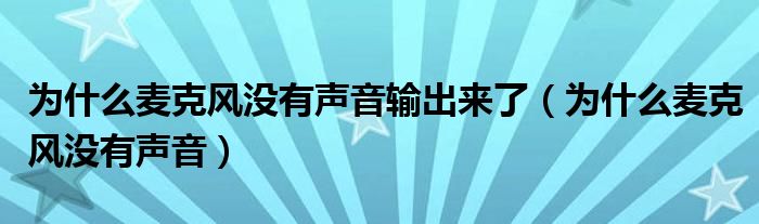 大家好,雨雨来为大家解答以上问题,为什么麦克风没有声音输出来了,为什么麦克风没有声音很多人还不知道,现在让我们一起来看看吧!