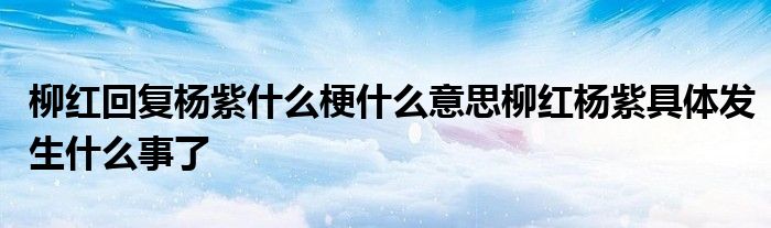 大家好.我是互联百科的羽儿,现在为大家解决以上柳红回复杨紫什么梗什么意思柳红杨紫具体发生什么事了的问题.