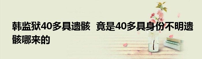 大家好.我是互联百科的羽儿,现在为大家解决以上韩监狱40多具遗骸 竟是40多具身份不明遗骸哪来的的问题.