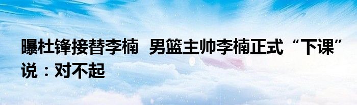 大家好.我是互联百科的羽儿,现在为大家解决以上曝杜锋接替李楠 男篮主帅李楠正式“下课”说:对不起的问题.
