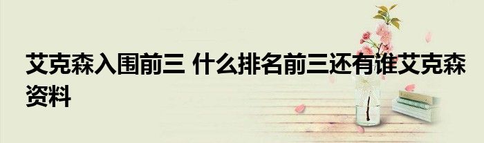大家好.我是互联百科的羽儿,现在为大家解决以上艾克森入围前三 什么排名前三还有谁艾克森资料的问题.