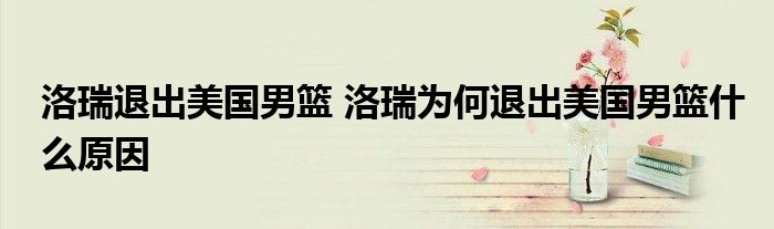 大家好.我是互联百科的羽儿,现在为大家解决以上洛瑞退出美国男篮 洛瑞为何退出美国男篮什么原因的问题.
