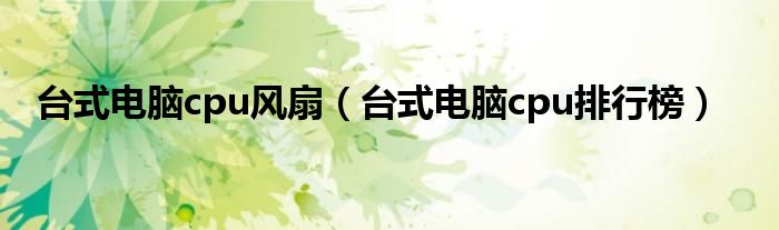 大家好,雨雨来为大家解答以上问题,台式电脑cpu风扇,台式电脑cpu排行榜很多人还不知道,现在让我们一起来看看吧!