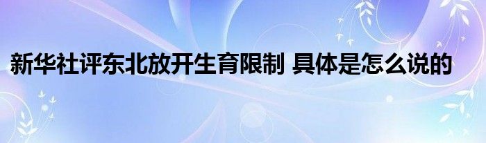 2、新华社评东北放开生育限制