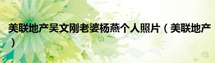 关于美联地产吴文刚老婆杨燕个人照片,美联地产这个很多人还不知道,今天菲菲来为大家解答以上的问题,现在让我们一起来看看吧!