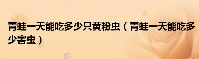大家好,小晋来为大家解答以下问题,关于青蛙一天能吃多少只黄粉虫,青蛙一天能吃多少害虫很多人还不知道,今天让我们一起来看看吧!