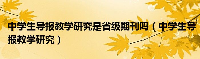 关于中学生导报教学研究是省级期刊吗,中学生导报教学研究这个很多人还不知道,今天菲菲来为大家解答以上的问题,现在让我们一起来看看吧!