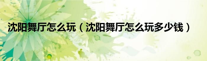 沈阳舞厅怎么玩(沈阳舞厅怎么玩多少钱)