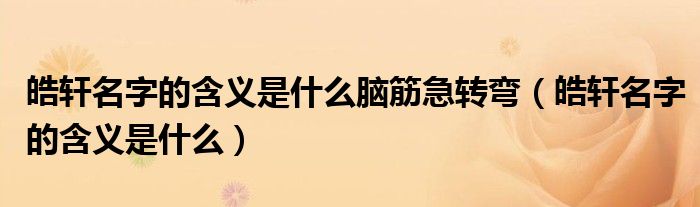 大家好,小晋来为大家解答以下问题,关于皓轩名字的含义是什么脑筋急转弯,皓轩名字的含义是什么很多人还不知道,今天让我们一起来看看吧!