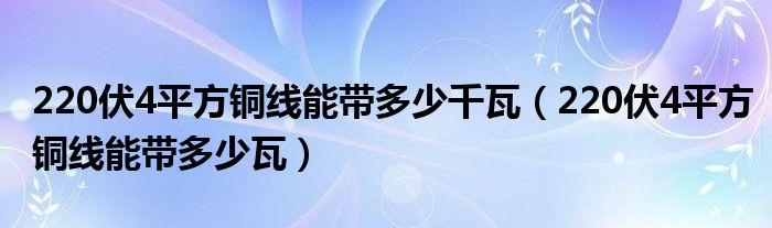 关于220伏4平方铜线能带多少千瓦,220伏4平方铜线能带多少瓦这个很多人还不知道,今天菲菲来为大家解答以上的问题,现在让我们一起来看看吧!