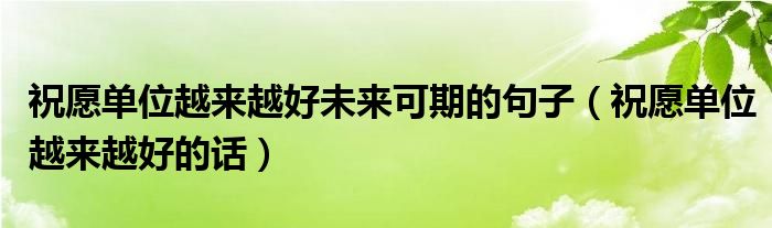 关于祝愿单位越来越好未来可期的句子,祝愿单位越来越好的话这个很多人还不知道,今天菲菲来为大家解答以上的问题,现在让我们一起来看看吧!