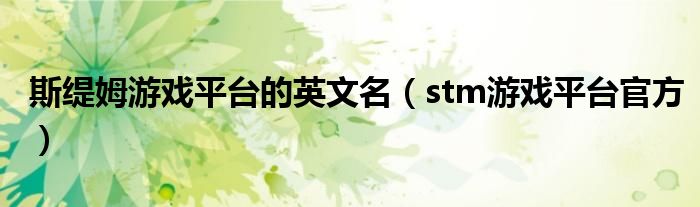 关于斯缇姆游戏平台的英文名,stm游戏平台官方这个很多人还不知道,今天菲菲来为大家解答以上的问题,现在让我们一起来看看吧!