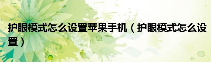 护眼模式怎么设置苹果手机(护眼模式怎么设置)