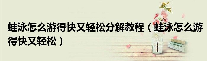 关于蛙泳怎么游得快又轻松分解教程,蛙泳怎么游得快又轻松这个很多人还不知道,今天菲菲来为大家解答以上的问题,现在让我们一起来看看吧!
