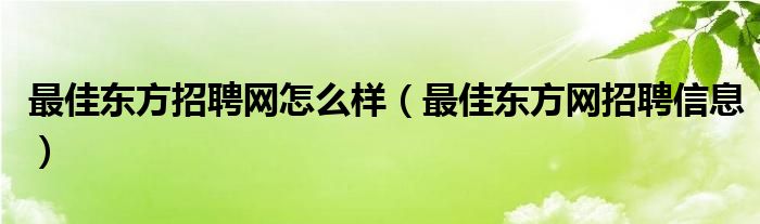 关于最佳东方招聘网怎么样,最佳东方网招聘信息这个很多人还不知道,今天菲菲来为大家解答以上的问题,现在让我们一起来看看吧!